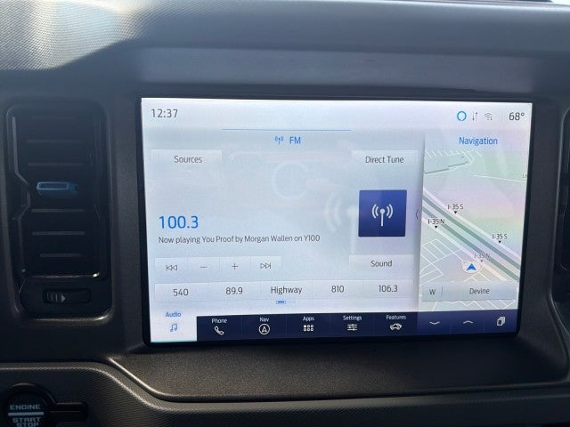 Thank you for visiting another one of Brown Chevrolet's online listings! Please continue for more information on this 2024 Ford Bronco Black Diamond with 17,577mi. This Ford includes: Optional Equipment: Safety and Security Lane-Keeping System BLIS (Blind Spot Information System) Cross-Traffic Alert collision warning Driver Alert Rear parking sensors Trail Control off-road speed control Convenience Illuminated driver visor mirror Illuminated passenger visor mirror Auto-dimming rear view mirror Proximity cargo area access release 1 interior 120V AC power outlet Intelligent Access with hands-free access and push button start Keyfob remote start Rear window defroster Flip-up rear windshield Rear windshield wipers Ambient lighting 0.400 kW Comfort Heated driver and front passenger seats Automatic climate control Dual-zone front climate control Transmission .10-SPEED AUTO TRANSMISSION 10-speed automatic Overdrive transmission Selectable mode transmission Transmission oil cooler Keyfob remote start Lock-up transmission Trail Control off-road speed control Transmission electronic control Automatic Smart device remote start Exterior and Appearance Convertible hardtop Non-metallic paint Second-row sunroof coverage First-row targa composite sunroof with manual activation Second-row targa composite sunroof with manual activation Front license plate bracket Removable sunroof Seating Front Row Heated Seats Heated driver and front passenger seats Powertrain and Mechanical 10-speed automatic Selectable mode transmission Transmission oil cooler Lock-up transmission Transmission electronic control Automatic Exterior HARD TOP,GRAY MOLDED-IN-COLOR Convertible hardtop Rear window defroster Flip-up rear windshield Second-row sunroof coverage First-row targa composite sunroof with manual activation Second-row targa composite sunroof with manual activation Removable sunroof Rear windshield wipers FRONT LICENSE PLATE BRACKET Front license plate bracket Auto High-Beam Headlamps Auto High Beam auto high-beam headlights Rear-Window Defroster and Washer Rear window defroster Flip-up rear windshield Rear windshield wipers Front Row Top Panels Storage Bag Additional Options Equipment Group 322A Mid Package Predictive brake assist system Driver visor with expandable coverage Driver visor mirror Illuminated driver visor mirror Passenger visor with expandable coverage Passenger visor mirror Illuminated passenger visor mirror Auto-dimming rear view mirror Heated driver and front passenger seats Automatic climate control Air conditioning - Yes Dual-zone front climate control Connected Navigation integrated navigation system with voice activation Real-time traffic Real-time weather Proximity cargo area access release 1 interior 120V AC power outlet 6 USB ports Intelligent Access with hands-free access and push button start Keyfob remote start Lane-Keeping System BLIS (Blind Spot Information System) Pre-Collision Assist with Pedestrian Detection Cross-Traffic Alert collision warning Pre-Collision Assist with Pedestrian Detection Driver Alert Auto High Beam auto high-beam headlights Rear mounted camera Rear parking sensors Ambient lighting 0.400 kW Smart device remote start Push-button Ford Co-Pilot360 Power Outlet - Back Side of Center Floor Console 1 interior 120V AC power outlet 0.400 kW Interior VINYL GRAY/BLACK SEATS Ambient Footwell Lighting Ambient lighting 2-Door Intelligent Access with Lock/unlock Proximity cargo area access release Intelligent Access with hands-free access and push button start Push-button Blind Spot Information System (BLIS) BLIS (Blind Spot Information System) Cross-Traffic Alert collision warning Connected Navigation Connected Navigation integrated navigation system with voice activation Real-time traffic Real-time weather Dual-Zone Electronic Automatic Temperature Control Automatic climate control Air conditioning - Yes Dual-zone front climate control Driver and Front Passenger Illuminated Sliding Visor Vanity Mirrors Driver visor wi